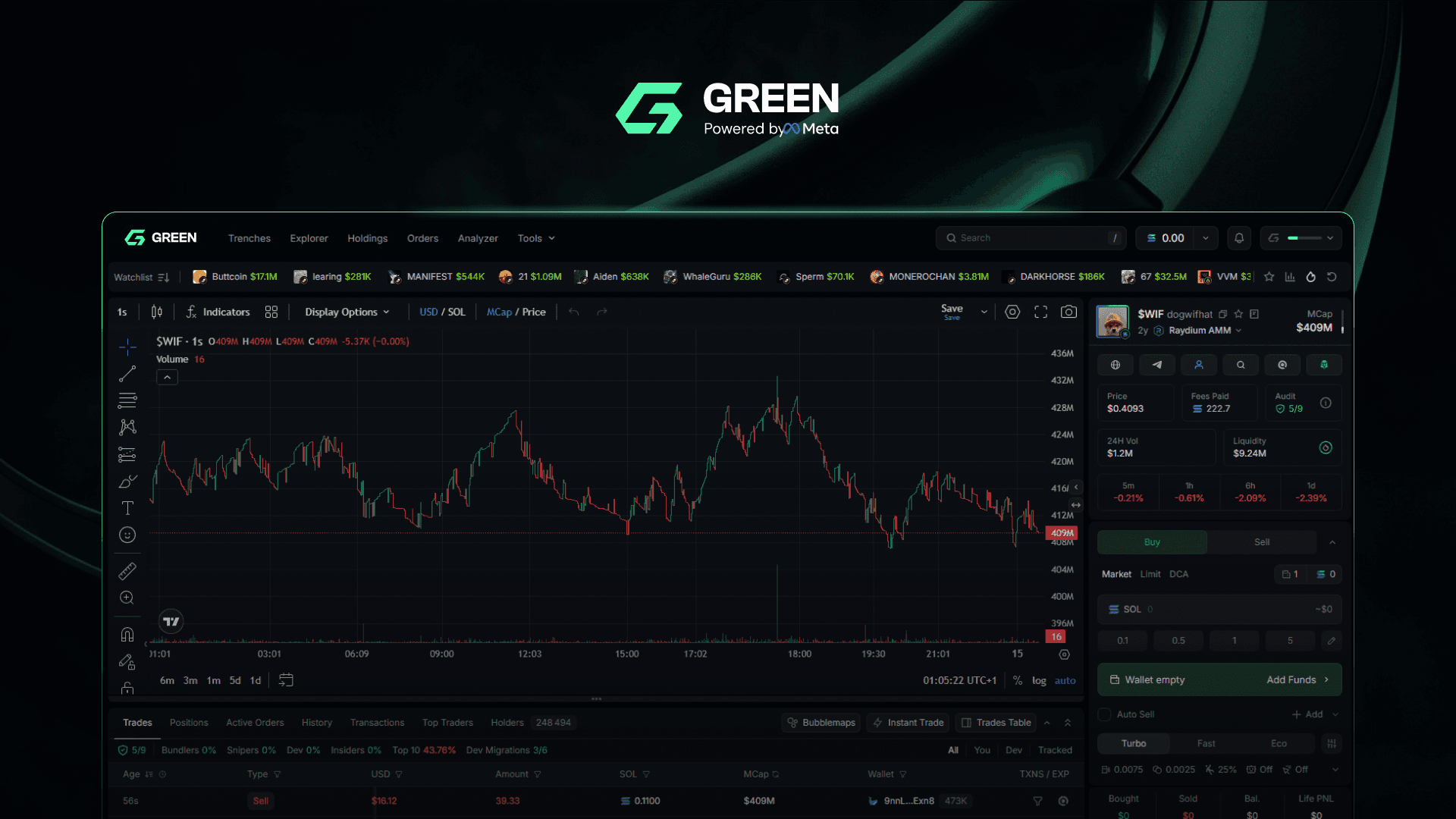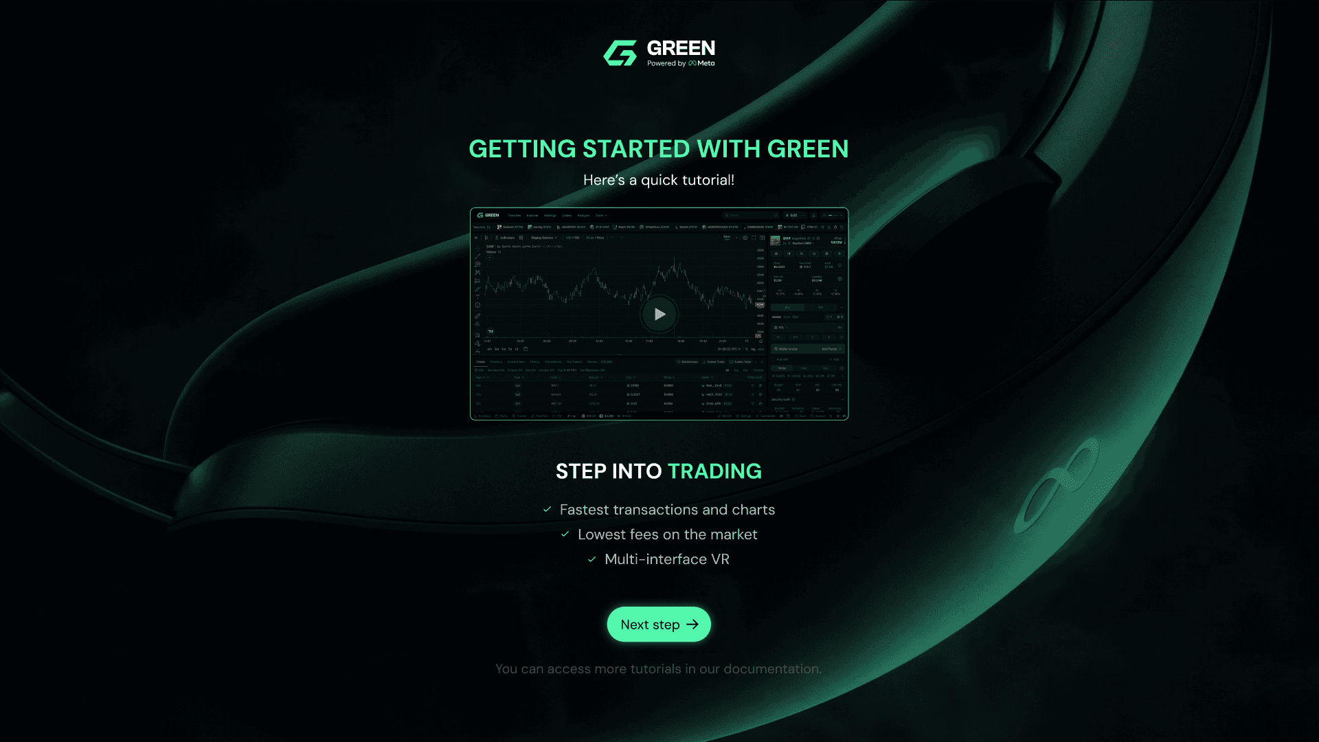 GREEN is a native Virtual Reality (VR) trading terminal built for the Meta Quest. It functions as a spatial operating system designed to visualize the high velocity "memecoin" market on Solana.